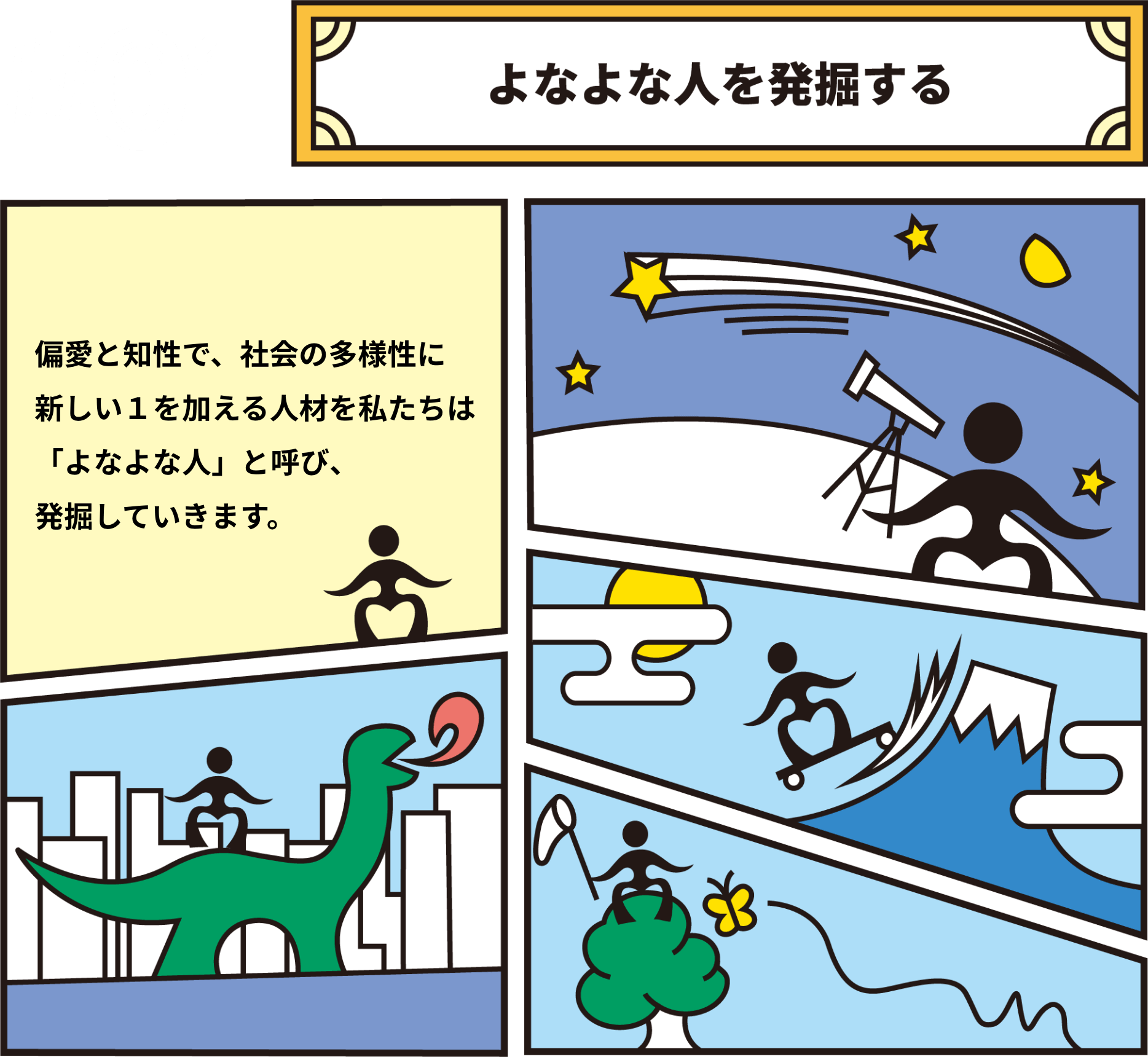 限りない偏愛と突き抜けた知性で 社会の多様性に新しい1を加え、 世界に笑顔を生み出す愛すべき変わり者たち。